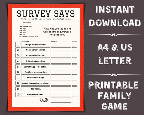Printable Survey Says Family Feud Family Fortunes Etsy