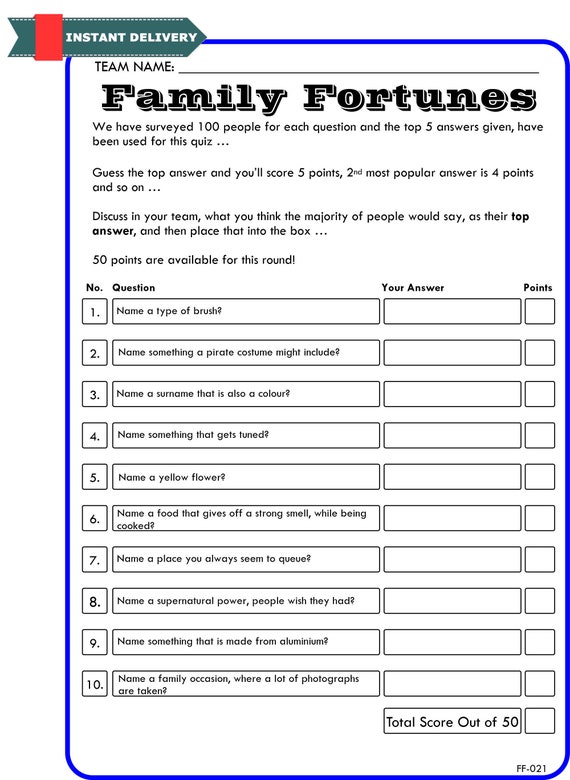 Game 26 Family Fortunes Family Feud 10 Quiz Family Fortune Questions And Answers Instant Delivery In 2021 Question And Answer Games Quiz Questions And Answers Family Quiz Questions