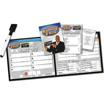 How to play family feud jumbo card game platinum edition These are the many productsmerchandisegoods that were brought to us due to the success of Family Feud. 1 Scoreboard 1 Answer Board 1 Wipe-off Marker 1 Survey Question Instruction Book 1 Strike Indicator with 3 X Strikes SET UP. Survey saysits time to play Family Feud Platinum Edition.